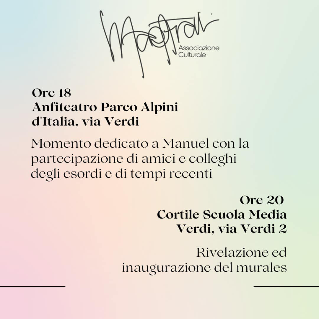 Il 1° marzo 2020 per volontà della Famiglia e degli Amici di Manuel, è nata ufficialmente l’Associazione Culturale MANUEL FRATTINI.